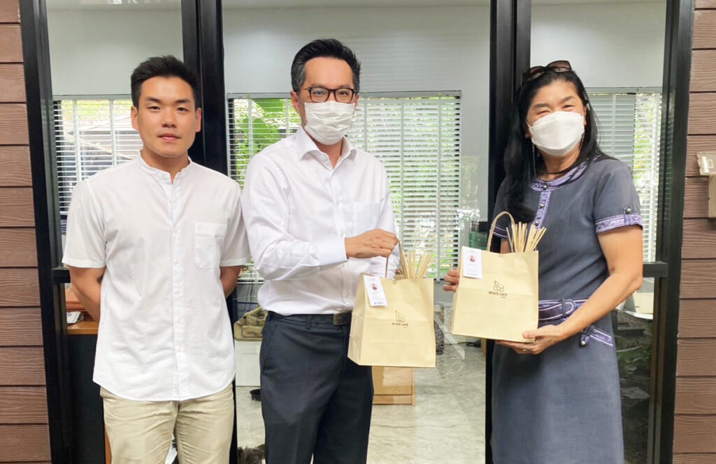 นางดรุณี รุ่งเรืองผล กรรมการผู้จัดการ บริษัท ดาร์วิด พร๊อพเพอร์ตี้ เซอร์วิส จำกัด มอบของขวัญปีใหม่ให้กับนายทวี กุลเลิศประเสริฐ ประธานเจ้าหน้าที่บริหาร