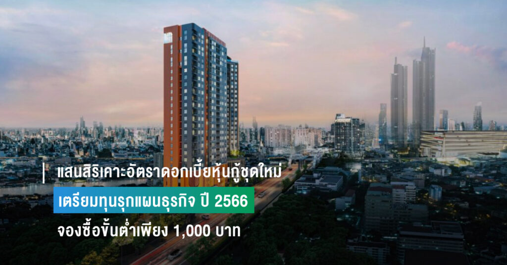 แสนสิริเคาะอัตราดอกเบี้ยหุ้นกู้ชุดใหม่ 4.20 – 4.55% เตรียมทุนรุกแผนธุรกิจ ปี 2566 จองซื้อขั้นต่ำเพียง 1,000 บาท วันที่ 25 – 27 ม.ค. นี้ ผ่าน 10 สถาบันการเงิน
