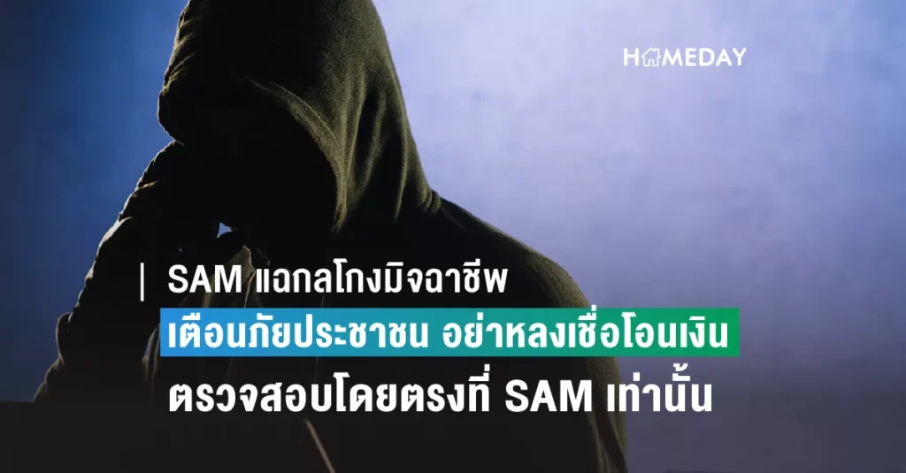 SAM แฉกลโกงมิจฉาชีพแอบอ้างเป็น SAM หลากหลายรูปแบบ เตือนภัยประชาชน อย่าหลงเชื่อโอนเงินหรือกรอกข้อมูลส่วนบุคคล แนะนำตรวจสอบโดยตรงที่ SAM