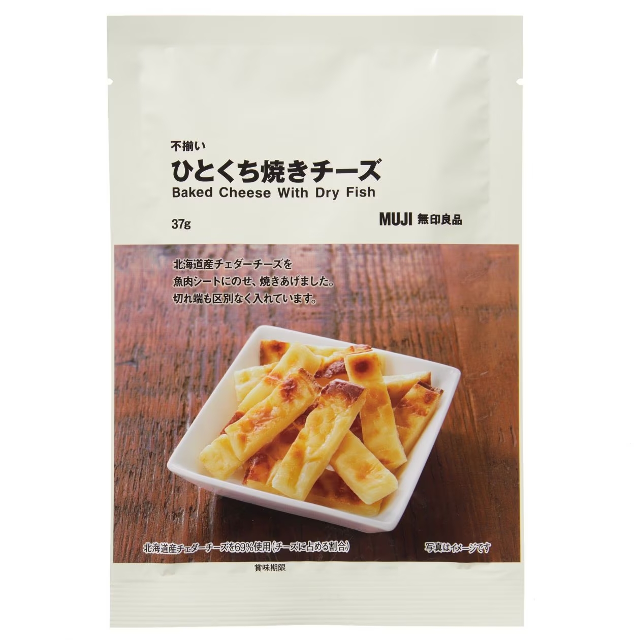 ปลาแห้งอบชีส ใครฟังชื่อก็คงจะงง ๆ กันนิดนึง แต่บอกเลยว่าของกินอันนี้คือเด็ดมาก ซึ่งตัวนี้ทำมาจากชีสเชดดาร์จากฮอกไกโดและจะมีกลิ่นและรสชาติอ่อน ๆ ของปลา ที่วางอยู่ด้านบน เป็นของกินมูจิที่อร่อยจนต้องยกนิ้วให้