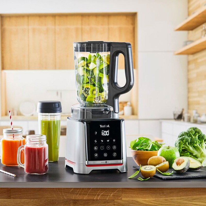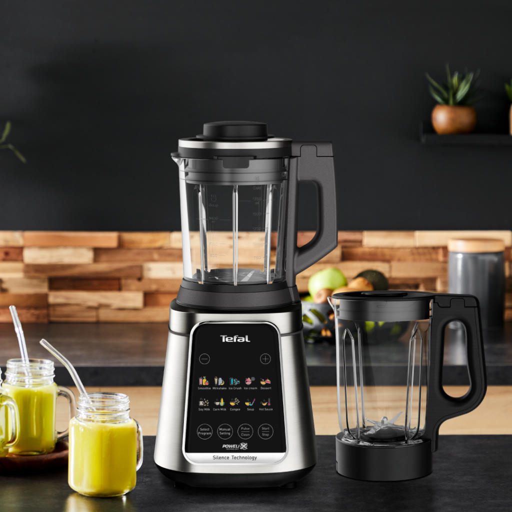 เครื่องปั่นน้ำผลไม้ แบรนด์ Tefal รุ่น BL91H ความจุขณะปั่น 1.75 ลิตร มาพร้อมกับหนังสือสูตรอาหาร “From Smoothie to Dessets” (“ตั้งแต่สมูทตี้ถึงของหวาน”) ที่มาพร้อมสูตรอาหารเพื่อสุขภาพแสนอร่อยกว่า 50 สูตร เติมเต็มไอเดียแสนอร่อย สำหรับทุกโอกาส ระบบควบคุมความเร็ว/เวลาแบบเลือกปรับเอง อีกทั้งโปรแกรมการปรุงแบบอัตโนมัติถึง 5 โปรแกรม มอบผลลัพธ์การปั่นที่เนียนขึ้นถึง 50 เท่า ด้วยการผสานการทำงานของมอเตอร์ความเร็วสูง 1600 วัตต์ ที่มีความเร็วการปั่น 35,000 รอบต่อนาที และใบมีดคุณภาพสูง มาพร้อมขวด Tritan แบบพกพาขนาด 600 มล. อุปกรณ์เสริมไม้คนช่วยให้ทำสมูทตี้อย่างไร้ที่ติได้ง่ายกว่าที่เคย