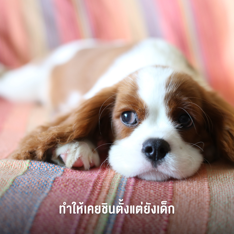 หากน้องหมาที่บ้านยังอายุน้อยมาก ๆ ตั้งแต่ 3 สัปดาห์ถึง 3 เดือน ช่วงนี้ก็ถือเป็นช่วงที่เหมาะ สำหรับการฝึกพวกเขาตั้งแต่ยังเล็กให้คุ้นชินกับเสียงดังประเภทต่าง ๆ ที่ต้องเจอในชีวิตประจำวัน เช่น พลุ ฟ้าผ่า แตรรถ ฯลฯ ผ่านการชวนเล่นไปด้วย เด็ก ๆ มีแนวโน้มที่จะไม่สะทกสะท้านกับเสียงรบกวนที่ดังเหล่านี้เมื่อโตขึ้นครับ