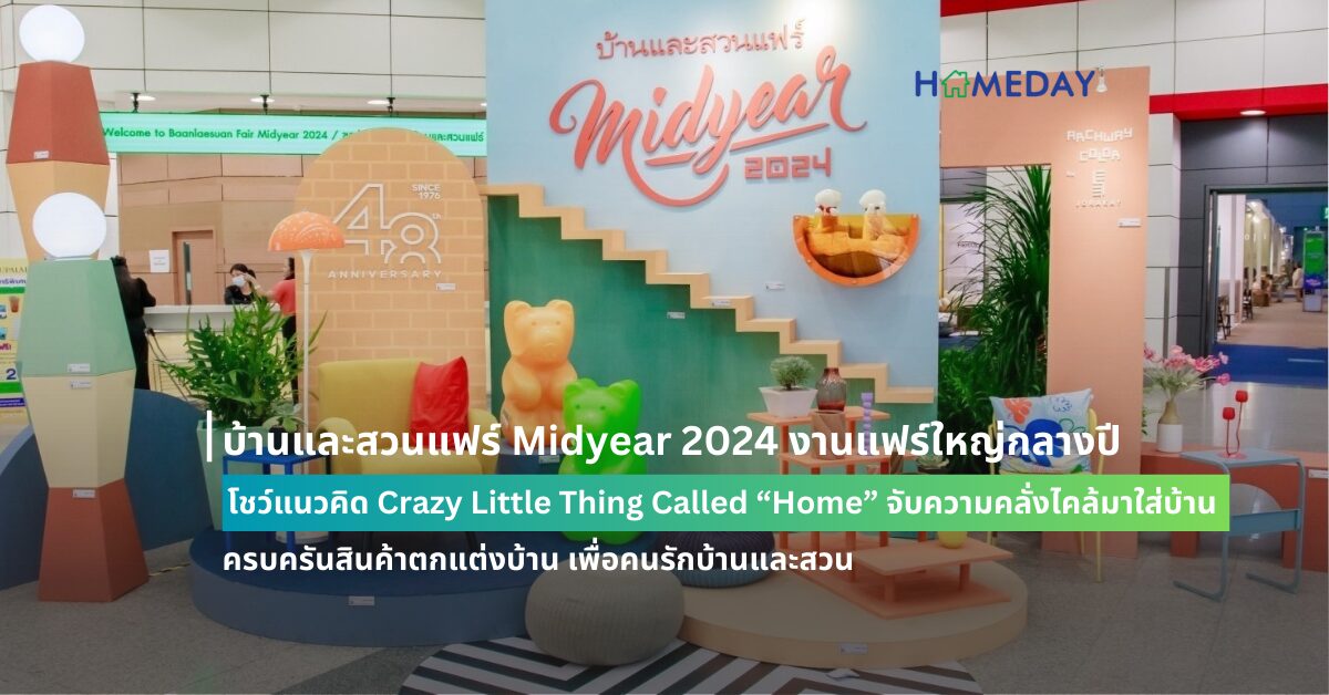 เริ่มแล้ว!!! งานบ้านและสวนแฟร์ Midyear 2024 จัดโดย บริษัท อมรินทร์ คอร์เปอเรชั่นส์ จำกัด (มหาชน) นำประสบการณ์กว่า 24 ปี ในการจัดงานแฟร์ที่ดีที่สุดในประเทศและภูมิภาคอาเซียน โดยปีนี้นำเสนอภายใต้แนวคิด Crazy Little Thing Called “Home” จับความคลั่งไคล้มาใส่บ้าน ขนกองทัพสินค้าแต่งบ้าน แต่งสวน เฟอร์นิเจอร์และของแต่งบ้าน, วัสดุก่อสร้างและตกแต่งห้องน้า, รับสร้างบ้าน, ต้นไม้, ของตกแต่งสวน, เครื่องใช้ไฟฟ้า, เครื่องนอน, งานคราฟต์ สินค้าแคมป์ปิ้งและ Outdoor และงานดีไซน์เก๋ๆ มารวมไว้ภายในงาน