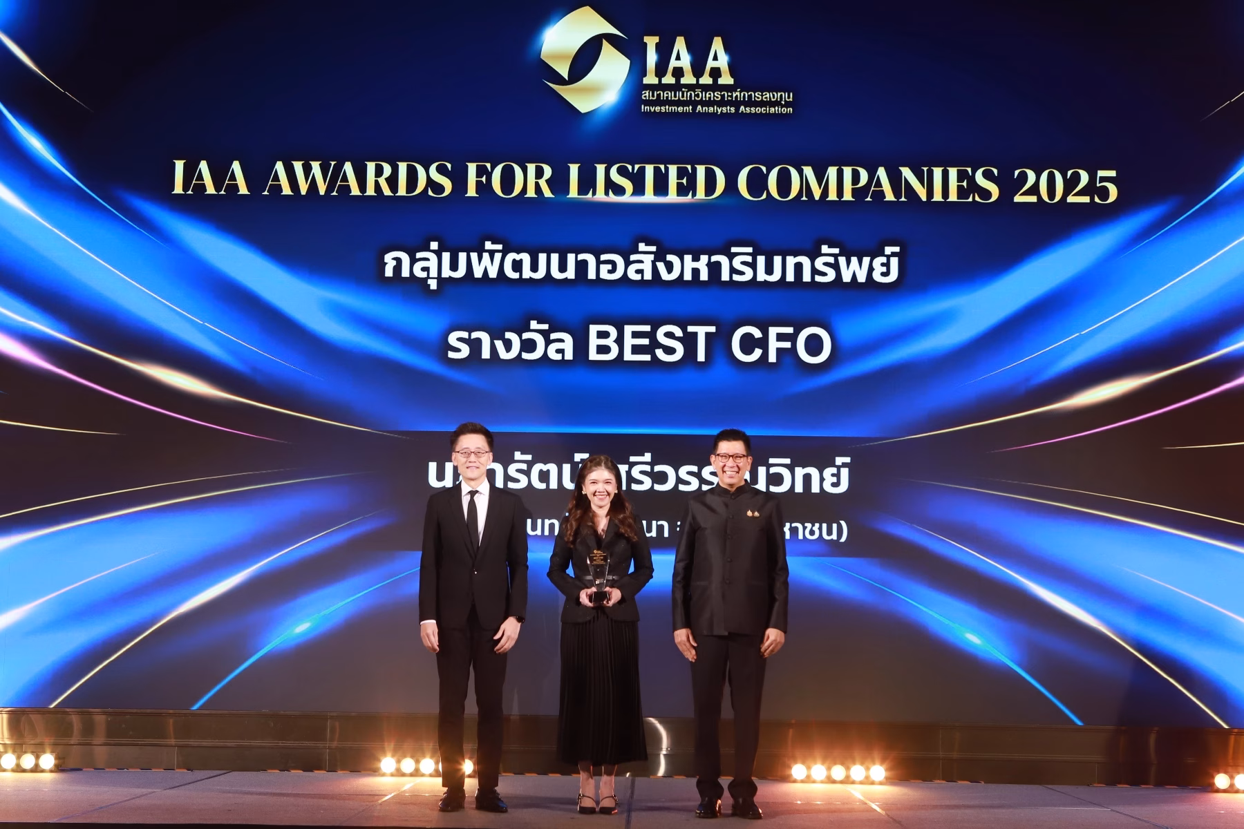- เวทีระดับประเทศ IAA Awards for Listed Companies สะท้อนความเป็นเลิศด้านการบริหารและการเงินจากนักวิเคราะห์ในประเทศที่เชื่อมั่นต่อเซ็นทรัลพัฒนา ในปี 2025 คว้า 2 รางวัล ในกลุ่มอุตสาหกรรมพัฒนาอสังหาริมทรัพย์ ได้แก่ รางวัล Best CFO โดยคุณนภารัตน์ ศรีวรรณวิทย์ และรางวัล Outstanding IR โดดเด่นในการนำเสนอข้อมูลที่โปร่งใสและมีคุณภาพ จัดโดย สมาคมนักวิเคราะห์การลงทุน (IAA) ผ่านการเสนอชื่อและให้คะแนนจากนักวิเคราะห์และผู้จัดการกองทุนของบริษัทหลักทรัพย์ทั่วประเทศ