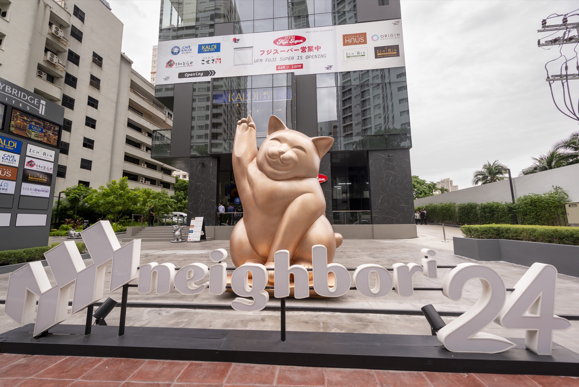 จุดเด่นของเนเบอร์ 24 ที่เห็นไกลตั้งแต่ต้นซอย “มาเนกิเนะโกะ” แมวนำโชคญี่ปุ่น ขนาดยักษ์ที่นั่งกวักเรียกแขก ต้อนรับอยู่ด้านหน้าโครงการ สร้างเอกลักษณ์อันโดดเด่นเป็นอย่างมาก