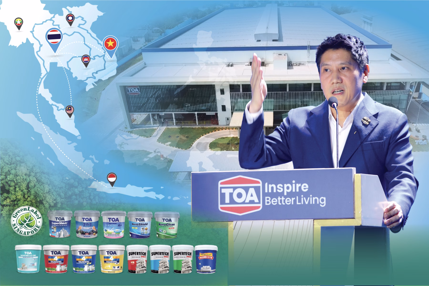 จากผู้นำเบอร์หนึ่งในไทยสู่การปักธงในอาเซียน TOA เริ่มต้นจากการนำเข้าสีคุณภาพสูงจากประเทศญี่ปุ่นในปี 1964 ก่อนจะขยายอาณาจักรสู่ตลาดเวียดนาม ด้วยการก่อตั้ง TOA Paint (Vietnam) Co., Ltd. ในปี 1995 สะท้อนวิสัยทัศน์ “การจับปลาในมหาสมุทร” ด้วยการขยายตลาดจากผู้นำในประเทศไทยสู่การเป็นผู้เล่นรายใหญ่ในภูมิภาคเอเชียตะวันออกเฉียงใต้