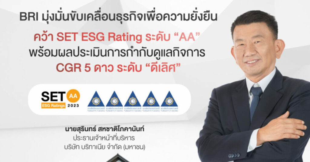 9 November 2023บริษัท บริทาเนีย จำกัด (มหาชน) หรือ BRI ผู้นำในการพัฒนาอสังหาริมทรัพย์ ที่มุ่งมั่นพัฒนาที่อยู่อาศัยเพื่อสังคมที่ดีอย่างยั่งยืน ได้รับคัดเลือกจากตลาดหลักทรัพย์แห่งประเทศไทยให้เป็นหนึ่งในรายชื่อหุ้นยั่งยืน SET ESG Ratings ประจำปี 2566 ในระดับ AA และได้รับคะแนน CGR การประเมินการกำกับดูแลกิจการ ระดับ…