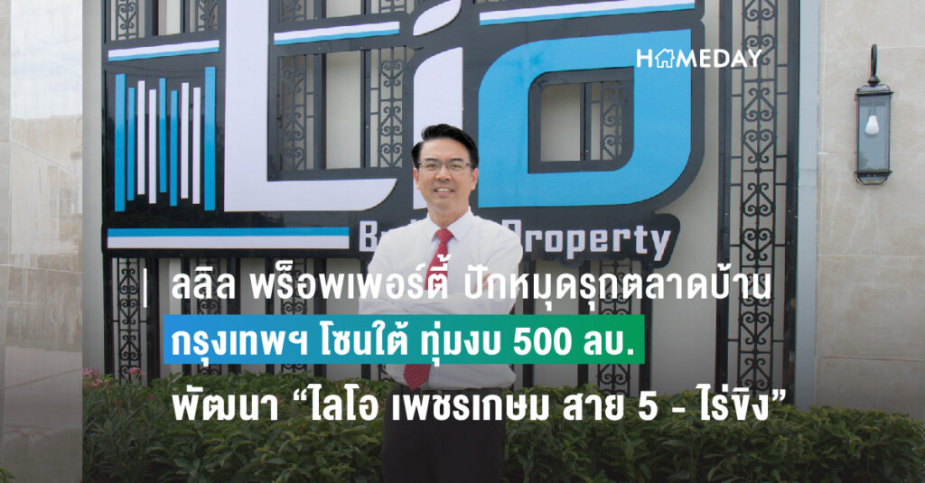 27 October 2023ลลิล พร็อพเพอร์ตี้ เปิดตัวโครงการทาวน์โฮม “ไลโอ เพชรเกษม สาย 5 - ไร่ขิง” หมากเด็ดดูดกำลังซื้อคุณภาพย่านกรุงเทพฯ ตอนใต้ มั่นใจ “ดีไซน์ที่ฉีกตลาด ฟังก์ชันที่ลงตัว ทำเลที่ดี ในราคาที่คุ้มค่าพร้อมให้คำปรึกษาด้านสินเชื่อ” จะช่วยกระตุ้นการตัดสินใจซื้อหลักของผู้บริโภคยุคปัจจุบัน นายชูรัชฏ์ ชาครกุล กรรมการผ