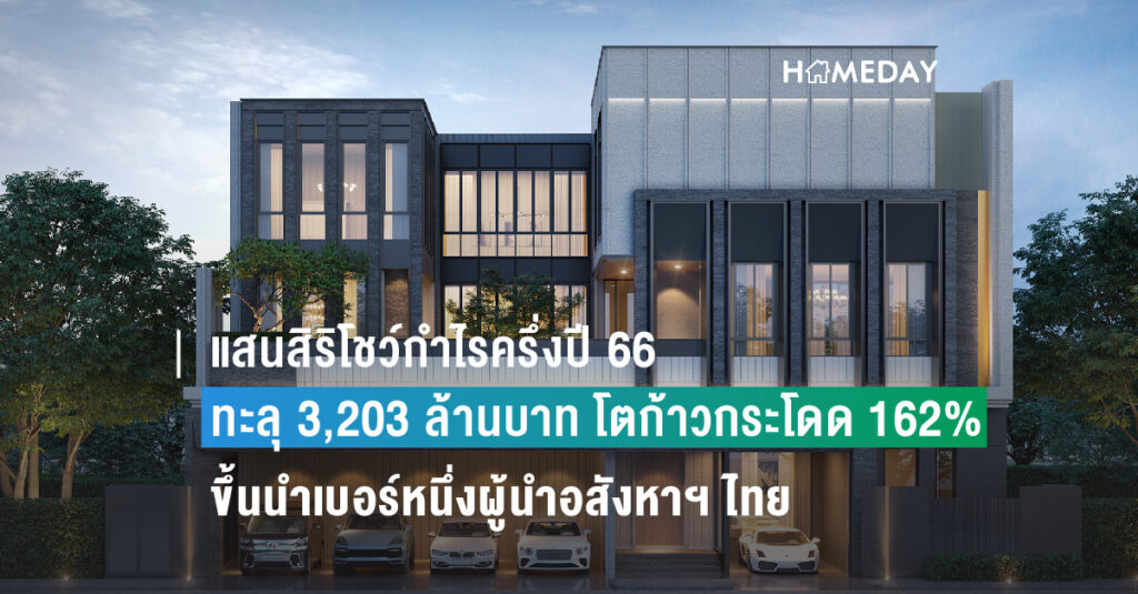 แสนสิริ (SIRI) ย้ำความแข็งแกร่งผู้นำอสังหาฯ โชว์ผลประกอบการครึ่งปีแรก 66 กำไรสุทธิสูงสุดในกลุ่มอุตสาหกรรม ขึ้นนำเบอร์หนึ่ง ด้วยกำไรสุทธิ 3,203 ล้านบาท