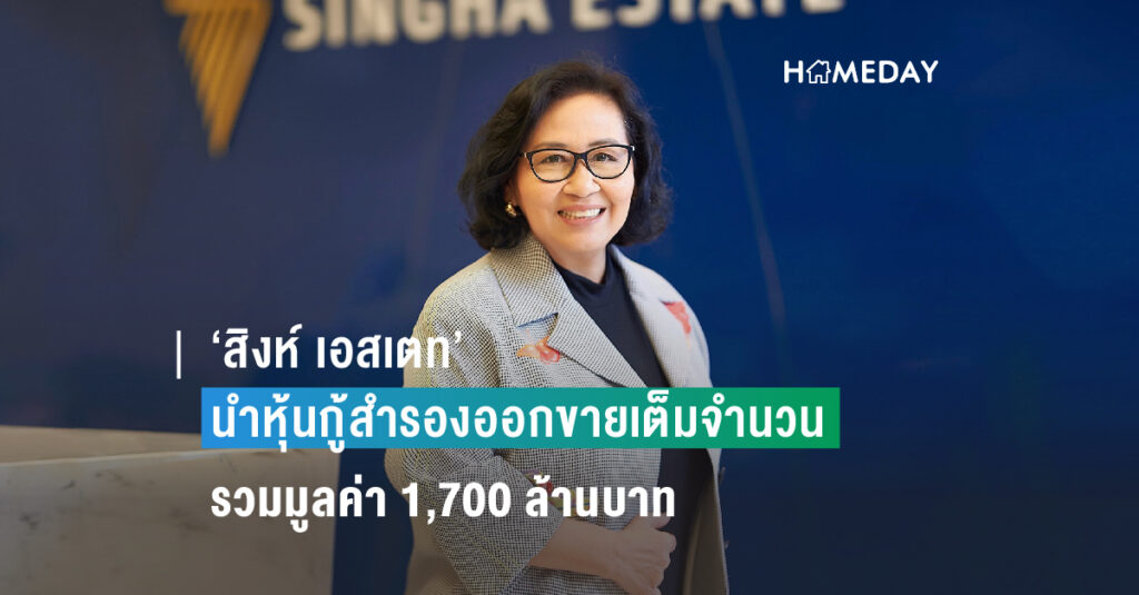 ‘สิงห์ เอสเตท’ นำหุ้นกู้สำรองออกขายเต็มจำนวนหลังได้รับความสนใจล้นหลาม รวมมูลค่า 1,700 ล้านบาท เหตุผู้ลงทุนมั่นใจธุรกิจเติบโตตามแผน ทั้งกลุ่มโรงแรมและอสังหาริมทรัพย์อื่น