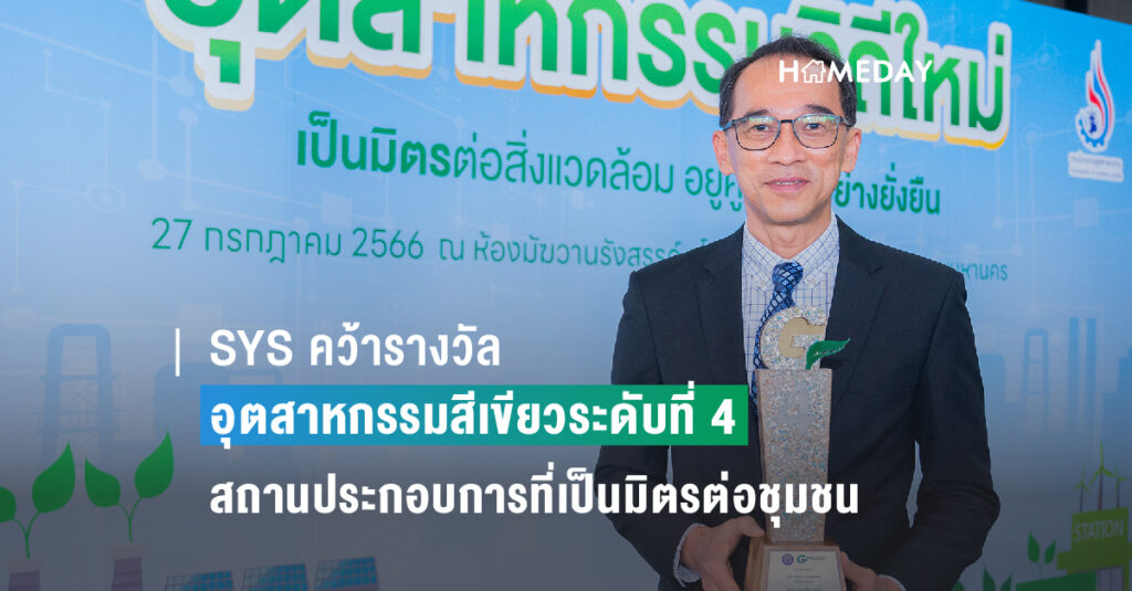 SYS คว้ารางวัลอุตสาหกรรมสีเขียวระดับที่ 4 แสดงถึงการเป็นสถานประกอบการที่เป็นมิตรต่อชุมชนและสิ่งแวดล้อม