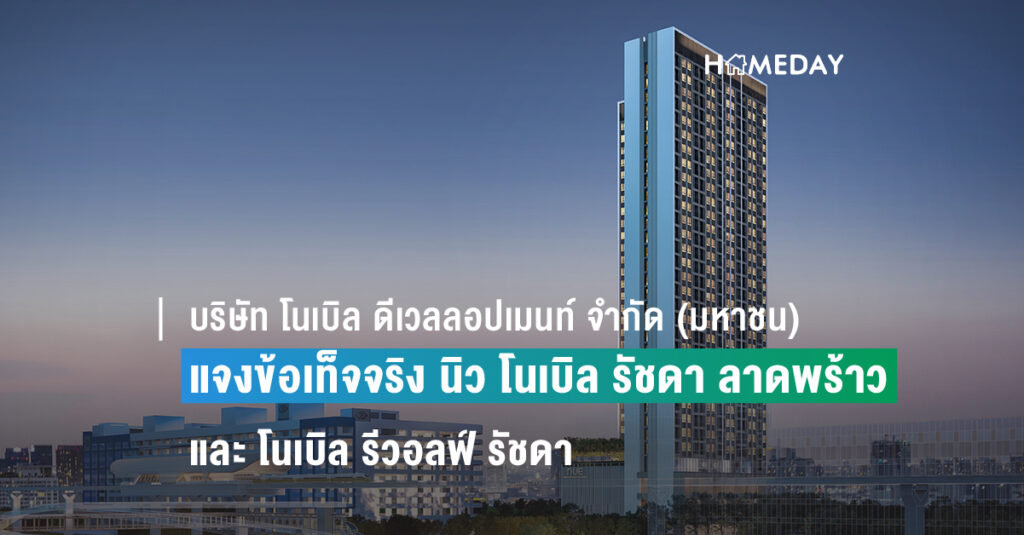 บริษัท โนเบิล ดีเวลลอปเมนท์ จำกัด (มหาชน) ชี้แจงข้อเท็จจริง โครงการ นิว โนเบิล รัชดา ลาดพร้าว และ โนเบิล รีวอลฟ์ รัชดา ดำเนินการก่อสร้างถูกต้องตามกฎหมายทุกประการ