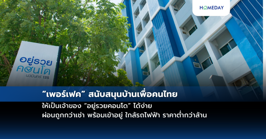“เพอร์เฟค” สนับสนุนบ้านเพื่อคนไทย ให้เป็นเจ้าของ “อยู่รวยคอนโด” ได้ง่าย ผ่อนถูกกว่าเช่า พร้อมเข้าอยู่ ใกล้รถไฟฟ้า ราคาต่ำกว่าล้าน