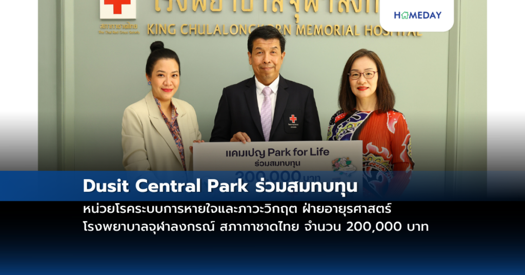 Dusit Central Park ร่วมสมทบทุน หน่วยโรคระบบการหายใจและภาวะวิกฤต ฝ่ายอายุรศาสตร์ โรงพยาบาลจุฬาลงกรณ์ สภากาชาดไทย จำนวน 200,000 บาท จากการดาวน์โหลดไลน์สติ๊กเกอร์ภายใต้แคมเปญ “Park for Life” สะท้อนความใส่ใจต่อระบบนิเวศและสุขภาพคนเมือง
