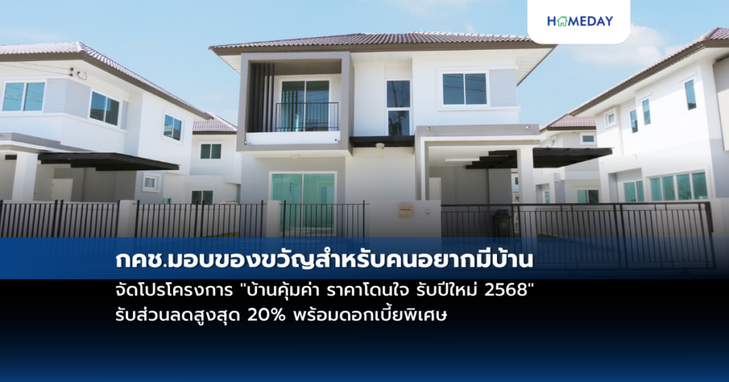 กคช.มอบของขวัญสำหรับคนอยากมีบ้าน จัดโปรโครงการ “บ้านคุ้มค่า ราคาโดนใจ รับปีใหม่ 2568” รับส่วนลดสูงสุด 20% พร้อมดอกเบี้ยพิเศษ
