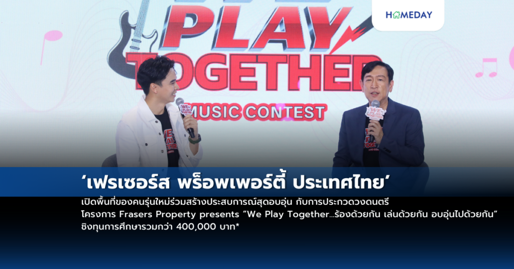 ‘เฟรเซอร์ส พร็อพเพอร์ตี้ ประเทศไทย’ เปิดพื้นที่ของคนรุ่นใหม่ร่วมสร้างประสบการณ์สุดอบอุ่น กับการประกวดวงดนตรี โครงการ Frasers Property presents “We Play Together…ร้องด้วยกัน เล่นด้วยกัน อบอุ่นไปด้วยกัน” ชิงทุนการศึกษารวมกว่า 400,000 บาท* พร้อมโอกาสร่วมพัฒนาทักษะกับศิลปินชั้นนำของประเทศ