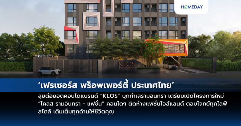 ‘เฟรเซอร์ส พร็อพเพอร์ตี้ ประเทศไทย’ ลุยต่อยอดคอนโดแบรนด์ “KLOS” บุกทำเลรามอินทรา เตรียมเปิดโครงการใหม่ “โคลส รามอินทรา – แฟชั่น” คอนโดฯ ติดห้างแฟชั่นไอส์แลนด์ ตอบโจทย์ทุกไลฟ์สไตล์ เติมเต็มทุกด้านให้ชีวิตคุณ