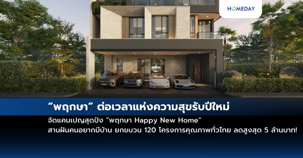 “พฤกษา” ต่อเวลาแห่งความสุขรับปีใหม่ จัดแคมเปญสุดปัง “พฤกษา Happy New Home” สานฝันคนอยากมีบ้าน ยกขบวน 120 โครงการคุณภาพทั่วไทย ลดสูงสุด 5 ล้านบาท!