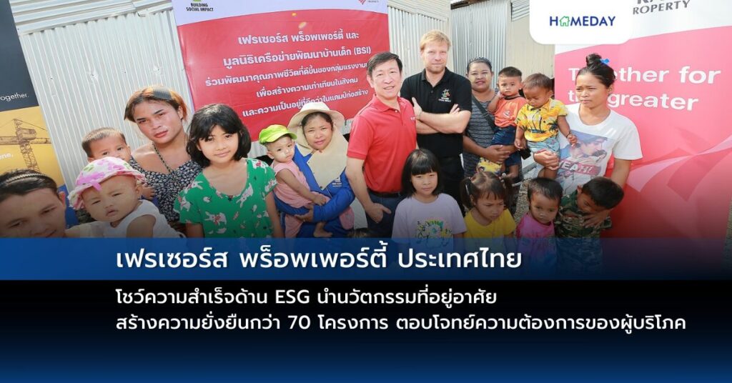 11 December 2024เฟรเซอร์ส พร็อพเพอร์ตี้ ประเทศไทย โชว์ผลงานการพัฒนาธุรกิจอสังหาริมทรัพย์อย่างยั่งยืน ตามแนวคิด ESG เพื่อมุ่งยกระดับการดูแลสังคมและสิ่งแวดล้อมเป็นสำคัญ หลังนำนวัตกรรมที่อยู่อาศัยมาประยุกต์ใช้ในโครงการกว่า 70 โครงการ เพื่อตอบโจทย์ความต้องการของผู้บริโภคด้านความยั่งยืนในปัจจุบัน พร้อมเตรียมเดินหน้าขยาย