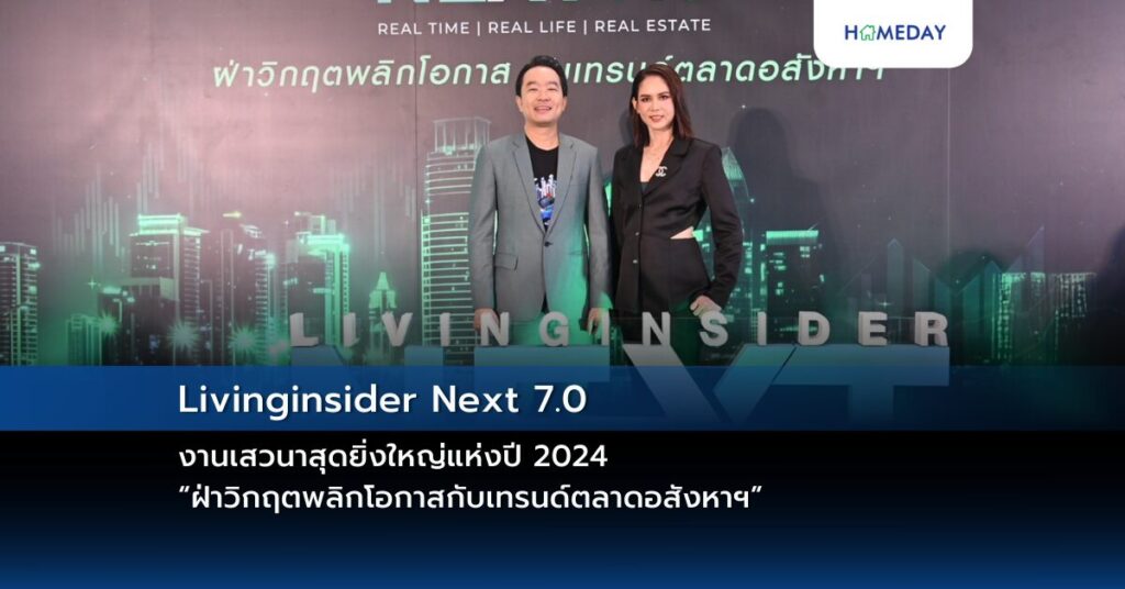 28 November 2024Livinginsider ตอกย้ำความเป็นผู้นำการพัฒนาแพลตฟอร์มอสังหาริมทรัพย์และมาร์เก็ตเพลสที่มีผู้ใช้งานมากที่สุดของไทย จัดงานเสวนา Livinginsider Next 7.0 เจาะลึกข้อมูลเกี่ยวกับตลาดอสังหาฯ ไทย ฉายภาพรวมของโอกาสและความท้าทาย รวมถึงแนวทางในการรับมือกับสถานการณ์ที่ผันผวน พร้อมเปิดตัวเทคโนโลยีและนวัตกรรมใหม่ เครื