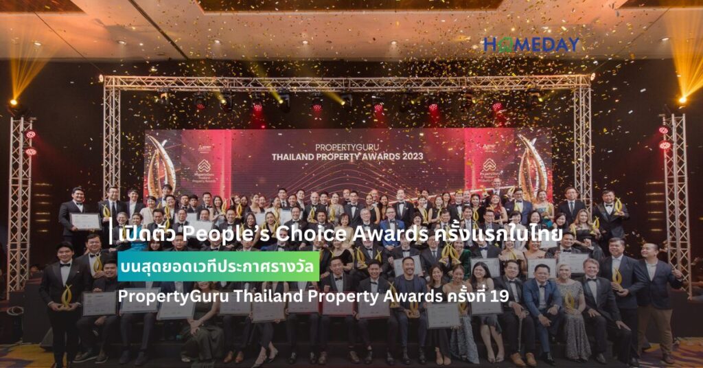 26 July 2024งานประกาศรางวัล PropertyGuru Thailand Property Awards สุดยอดงานมอบรางวัลเกียรติยศวงการอสังหาริมทรัพย์ไทยที่จัดขึ้นอย่างต่อเนื่องยาวนานที่สุดในประเทศไทย ประกาศเพิ่มรางวัล People’s Choice Awards ครั้งแรกในประเทศไทย ให้ผู้บริโภคที่ซื้ออสังหาริมทรัพย์ในไทยได้โหวตผู้พัฒนาอสังหาที่ชื่นชอบ โดยรางวัลนี้เป็น