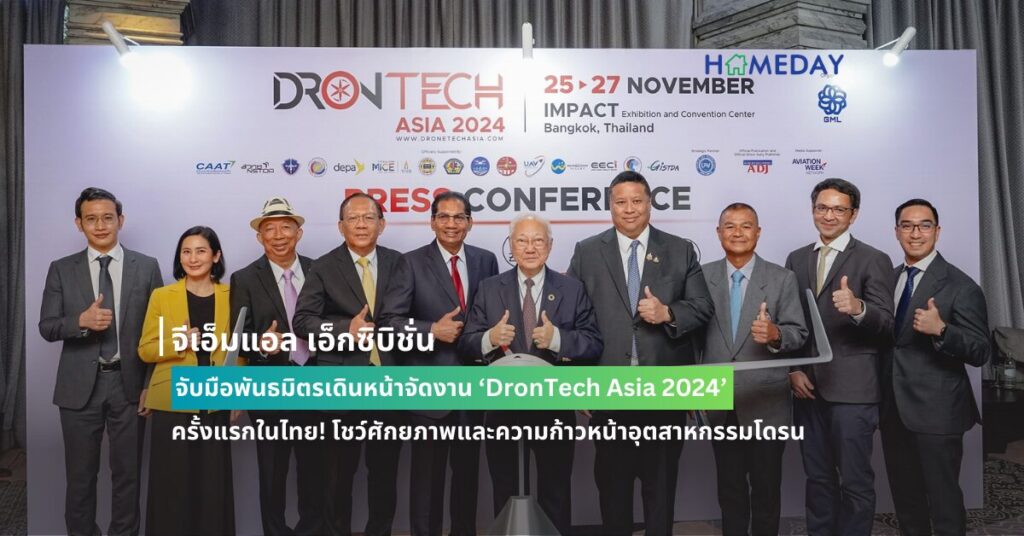 9 July 2024นายมนู เลียวไพโรจน์ (ที่ 5 จากขวา) ประธาน บริษัท จีเอ็มแอล เอ็กซิบิชั่น (ประเทศไทย) จำกัด ผนึกกำลังพันธมิตรภาครัฐและเอกชน จัดงานแถลงข่าว “บทบาทอุตสาหกรรมโดรนกับการขับเคลื่อนเศรษฐกิจไทยยุคดิจิทัล และเปิดตัวงาน “DronTech Asia 2024” งานนิทรรศการและการประชุมระดับนานาชาติ ครั้งแรกในประเทศไทยที่เกี่ยวข้อง