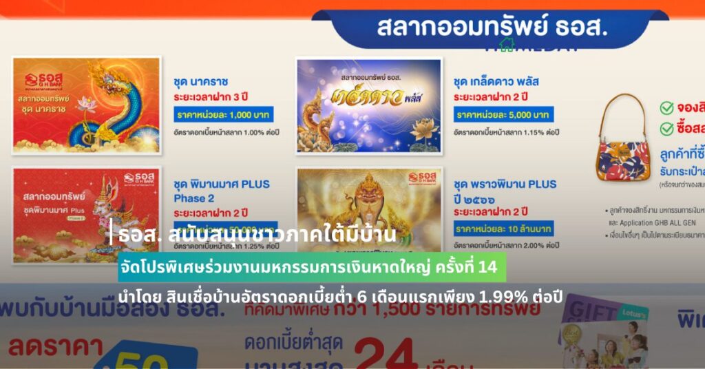5 July 2024ธนาคารอาคารสงเคราะห์ (ธอส.) ในฐานะสถาบันการเงินของรัฐ ที่มีพันธกิจ “ทำให้คนไทยมีบ้าน” พร้อมสนับสนุนให้คนไทยมีที่อยู่อาศัยเป็นของตนเองมากขึ้น ด้วยการจัดโปรโมชันพิเศษร่วมงาน “มหกรรมการเงินหาดใหญ่ ครั้งที่ 14 Money Expo 2024 Hatyai” ระหว่างวันที่ 5-7 กรกฎาคม 2567 เพื่อเพิ่มโอกาสให้ชาวภาคใต้ ได้เข้าถึง