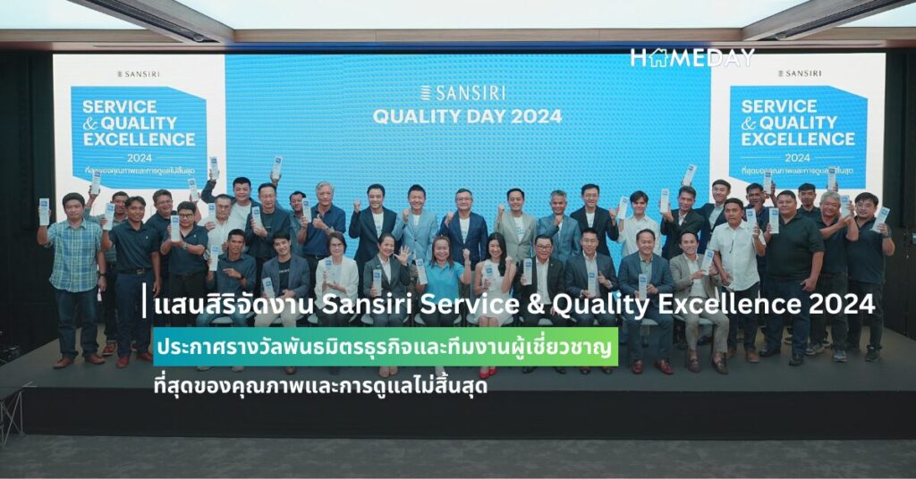 3 July 2024แสนสิริ 40 ปี แบรนด์อสังหาฯ อันดับหนึ่ง ผู้นำด้านดีไซน์และคุณภาพการบริการ จัดงาน Sansiri Service & Quality Excellence 2024 ที่สุดของคุณภาพและการดูแลไม่สิ้นสุด ประกาศรางวัลแก่พันธมิตรธุรกิจ ได้แก่ ผู้จัดจำหน่ายวัสดุอุปกรณ์การก่อสร้างและตกแต่ง รวมถึงบริษัทผู้รับเหมาและควบคุม ที่มีอุดมการณ์เดียวกัน