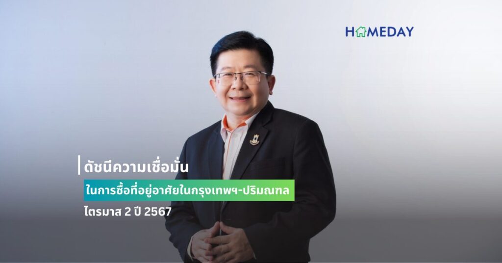 21 August 2024ศูนย์ข้อมูลอสังหาริมทรัพย์ ธนาคารอาคารสงเคราะห์ (REIC) โดย ดร.วิชัย วิรัตกพันธ์ ผู้ตรวจการธนาคารอาคารสงเคราะห์ และรักษาการผู้อำนวยการศูนย์ข้อมูลอสังหาริมทรัพย์ เปิดเผยว่า ดัชนีความเชื่อมั่นความต้องการซื้อที่อยู่อาศัยในกรุงเทพฯ-ปริมณฑล ในไตรมาส 2 ปี 2567 มีค่าดัชนีเท่ากับระดับ 39.6 ซึ่ง เพิ่มขึ้นเล