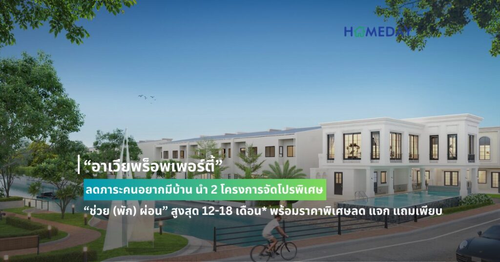 17 June 2024เจ้าตลาดสุขุมวิท-พระประแดง-ปู่เจ้าฯ “อาเวียพร็อพเพอร์ตี้” เห็นใจผู้บริโภคที่อยากมีบ้านแต่ภาระหนัก นำบ้านเดี่ยว-บ้านแฝด และทาวน์โฮม มาจัดโปรโมชั่นพิเศษ “ช่วย (พัก) ผ่อน” โดยช่วยลูกค้าผ่อนบ้านนานสูงสุด 12-18 เดือน พร้อมเปิดบ้านโซนใหม่หน้าบ้านตรงสวน ในราคาเริ่มต้นพิเศษที่ 2.59 ล้านบาท* รับโปรฯดีๆ ที่