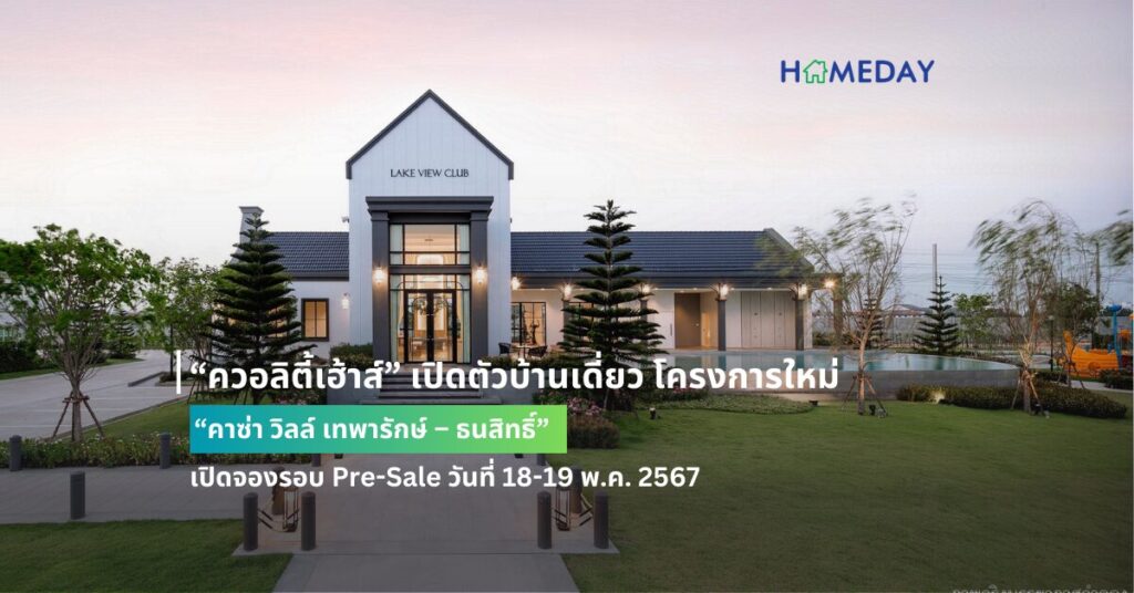 8 May 2024บริษัท ควอลิตี้เฮ้าส์ จำกัด (มหาชน) ผู้พัฒนาอสังหาริมทรัพย์ชั้นนำ ล่าสุด เปิดจองโครงการใหม่ “คาซ่า วิลล์ เทพารักษ์ – ธนสิทธิ์” บ้านเดี่ยวกลิ่นอายสไตล์อังกฤษ พร้อมฟังก์ชั่นเพื่อการใช้ชีวิตอย่างมีระดับ และสิ่งอำนวยความสะดวกส่วนกลางครบครัน บนทำเลศักยภาพ สะดวกเดินทางสู่ใจกลางเมือง ใกล้ทางด่วน และแหล่งไล