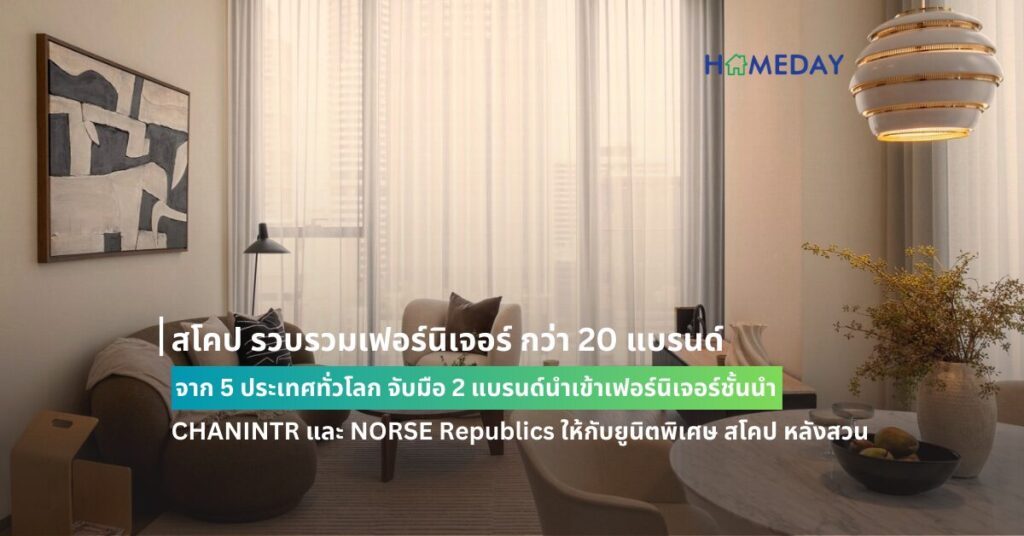 7 May 2024SCOPE ผู้พัฒนาอสังหาริมทรัพย์ระดับอัลตาลักซ์ชัวในสเกลเอ็กซ์คลูซีฟ ตอกย้ำภาพลักษณ์ผู้นำด้านการสร้างสรรค์ที่อยู่อาศัยซึ่งเปี่ยมไปด้วยรสนิยมสำหรับตอบโจทย์ลูกค้าระดับอินเตอร์เนชันแนล (Tastemaker) ผ่านความร่วมมือกับสองแบรนด์ของตกแต่งบ้านที่มีรสนิยมในการดีไซน์สำหรับตอบโจทย์ความ Sophisticated ชั้นนำ ผู้นำเ