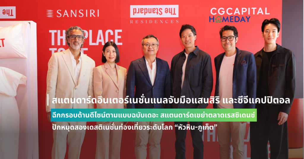 6 February 2024สแตนดาร์ด อินเตอร์เนชั่นแนล (Standard International) แบรนด์ไลฟ์สไตล์ระดับโลกที่ทรงอิทธิพลที่สุดในธุรกิจไลฟ์สไตล์โฮเทล จับมือ 2 ดีเวปลอปเปอร์ยักษ์ใหญ่อย่าง บริษัท แสนสิริ จำกัด (มหาชน) (Sansiri Public Company Limited) ผู้นำตลาดอสังหาริมทรัพย์ลักซ์ชัวรี่และซูเปอร์ลักซ์ชัวรี่ของไทยและ บริษัท ซีจี แคปปิ
