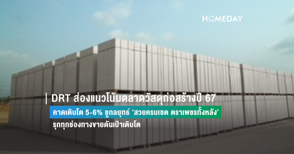 11 January 2024‘บมจ.ผลิตภัณฑ์ตราเพชร หรือ DRT’ ประเมินตลาดวัสดุก่อสร้างปี 67 เติบโต 5-6% รับทิศทางการขยายตัวของโครงสร้างพื้นฐานด้านสาธารณูปโภคและกำลังซื้อที่ดีขึ้น หลังรัฐกระตุ้นเศรษฐกิจฟื้นความเชื่อมั่นผู้บริโภค ชูกลยุทธ์ ‘สวยครบเซต ตราเพชรทั้งหลัง’ ตอกย้ำความหลากหลายสินค้านำไปก่อสร้างบ้านได้ทั้งหลัง พร้อมประสิทธ
