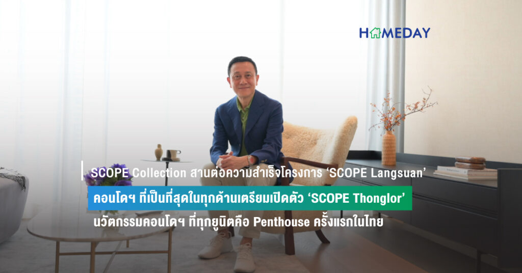 14 December 2023SCOPE ผู้พัฒนาอสังหาริมทรัพย์ระดับอัลตร้าลักชัวรีในสเกลเอ็กซ์คลูซีฟ ประกาศความสำเร็จของ “สโคป หลังสวน” (SCOPE Langsuan) ที่สุดของคอนโดมิเนียมระดับ Ultimate Class แห่งย่านหลังสวนที่ปิดการขายไปแล้วกว่า 60% ทุบสถิติคอนโดราคาสูงที่สุดในประเทศไทยที่ราคา 1 ล้านบาทต่อตารางเมตร อัดแน่นด้วยคุณภาพงานออกแบบมีร