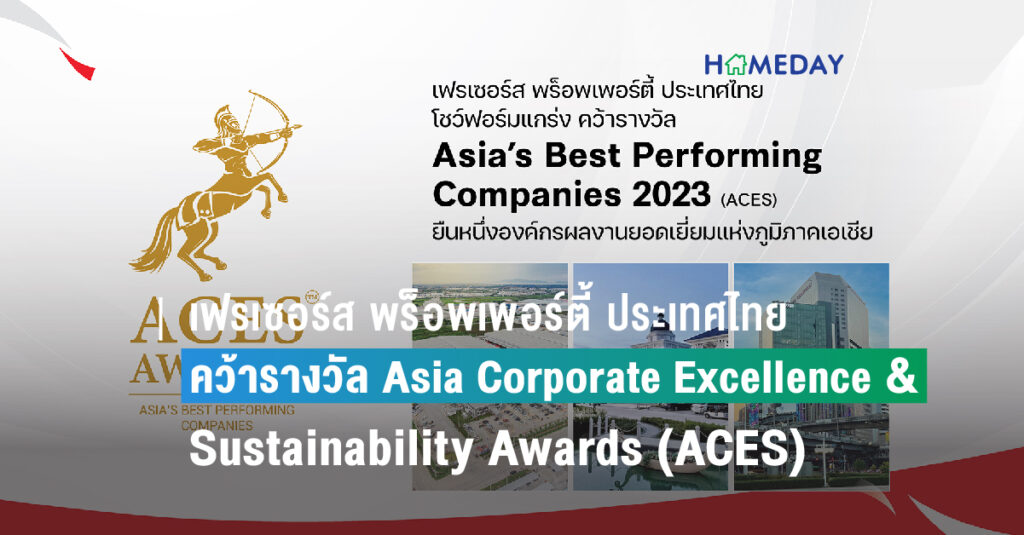 1 December 2023บริษัท เฟรเซอร์ส พร็อพเพอร์ตี้ (ประเทศไทย) จำกัด (มหาชน) หรือ "FPT" ผู้นำอสังหาริมทรัพย์ครบวงจรรายแรกของประเทศไทย ยืนหนึ่งบนเวทีระดับนานาชาติ Asia Corporate Excellence & Sustainability Awards 2023 (ACES) รางวัลอันทรงเกียรติที่ยกย่ององค์กรและผู้นำที่มีผลงานโดดเด่นควบคู่กับการส่งเสริมด้านความยั่งย
