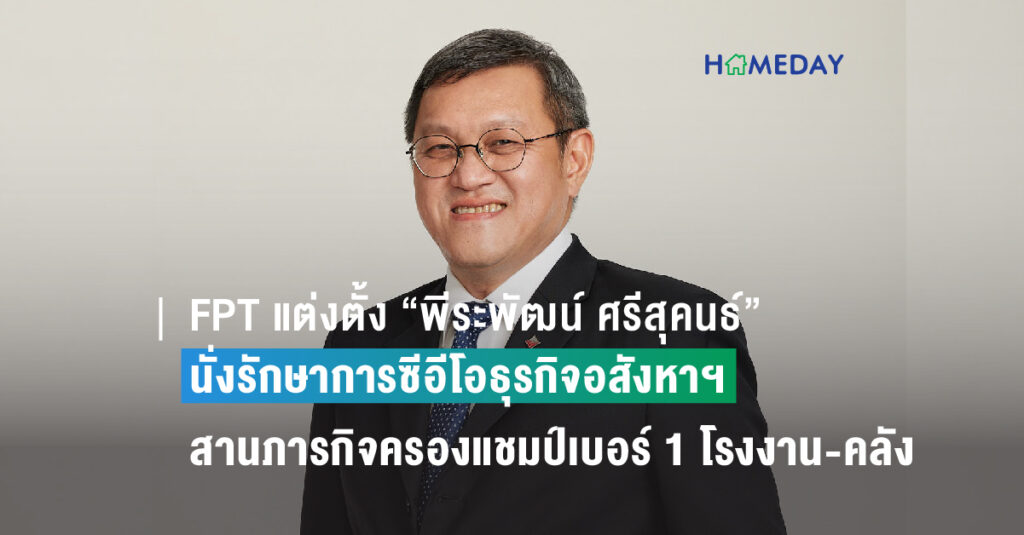 17 October 2023บริษัท เฟรเซอร์ส พร็อพเพอร์ตี้ (ประเทศไทย) จำกัด (มหาชน) หรือ "FPT" ประกาศแต่งตั้ง นายพีระพัฒน์ ศรีสุคนธ์ ขึ้นดำรงตำแหน่งรักษาการประธานเจ้าหน้าที่บริหาร (Acting CEO) กลุ่มธุรกิจอสังหาริมทรัพย์เพื่ออุตสาหกรรม หรือเป็นที่รู้จักในนามเฟรเซอร์ส พร็อพเพอร์ตี้ อินดัสเทรียล (ประเทศไทย) ซึ่งเป็น…