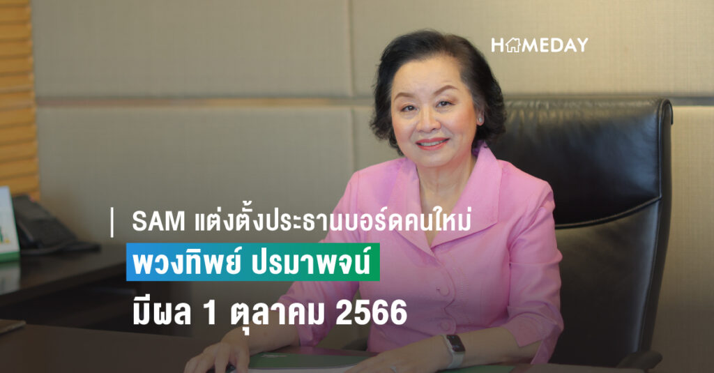 12 October 2023คณะกรรมการบริษัท บริหารสินทรัพย์สุขุมวิท จำกัด (บสส.) หรือ SAM มีมติแต่งตั้ง “นางพวงทิพย์ ปรมาพจน์” นั่งประธานบอร์ด SAM คนใหม่ มีผลตั้งแต่วันที่ 1 ตุลาคม 2566 นางพวงทิพย์ ปรมาพจน์ ปัจจุบันอายุ 70 ปี มีประสบการณ์ในการทำงานตำแหน่งสำคัญทางเศรษฐกิจมากมาย อาทิ ผู้จัดการกองทุนเพื่อการฟื้นฟูและพัฒ