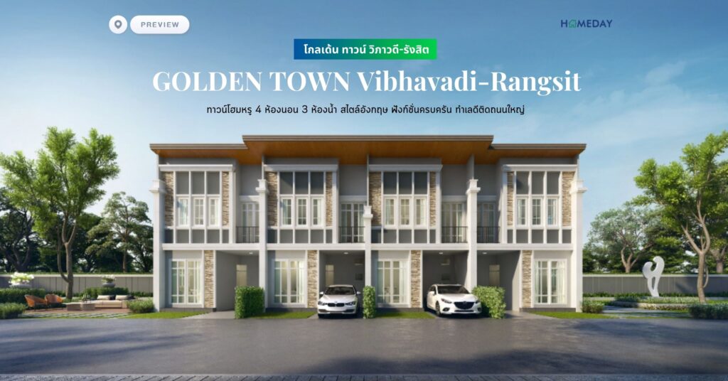 พรีวิว โกลเด้น ทาวน์ วิภาวดี-รังสิต (GOLDEN TOWN Vibhavadi-Rangsit) ทาวน์โฮมหรู 4 ห้องนอน 3 ห้องน้ำ สไตล์อังกฤษ ฟังก์ชั่นครบครัน ทำเลดีติดถนนใหญ่
