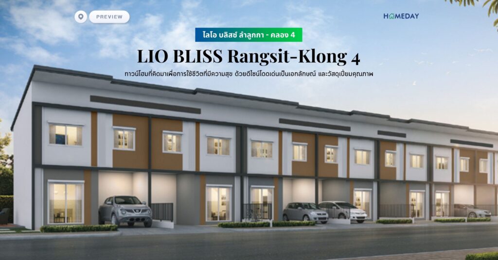 พรีวิว ไลโอ บลิสซ์ ลำลูกกา – คลอง 4 (LIO BLISS Rangsit-Klong 4) ทาวน์โฮมที่คิดมาเพื่อการใช้ชีวิตที่มีความสุข ด้วยดีไซน์โดดเด่นเป็นเอกลักษณ์ และวัสดุเปี่ยมคุณภาพ