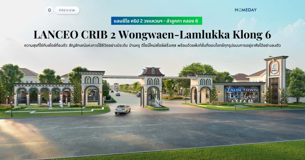 พรีวิว แลนซีโอ คริป 2 วงแหวนฯ – ลำลูกกา คลอง 6 (LANCEO CRIB 2 Wongwaen-Lamlukka Klong 6) ความสุขที่ใช่กับสไตล์ที่ลงตัว สัญลักษณ์แห่งการใช้ชีวิตอย่างมีระดับ บ้านหรู ดีไซน์ใหม่สไตล์ฝรั่งเศส พร้อมด้วยฟังก์ชั่นที่ตอบโจทย์ทุกรูปแบบการอยู่อาศัยได้อย่างลงตัว