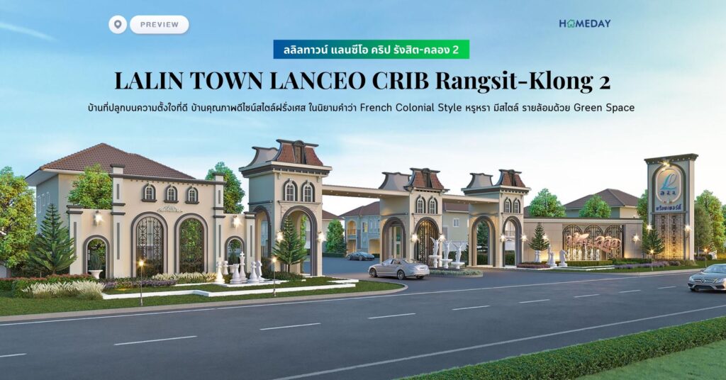 พรีวิว ลลิลทาวน์ แลนซีโอ คริป รังสิต-คลอง 2 (LALIN TOWN LANCEO CRIB Rangsit-Klong 2) บ้านที่ปลูกบนความตั้งใจที่ดี บ้านคุณภาพดีไซน์สไตล์ฝรั่งเศส ในนิยามคำว่า French Colonial Style หรูหรา มีสไตล์ รายล้อมด้วย Green Space