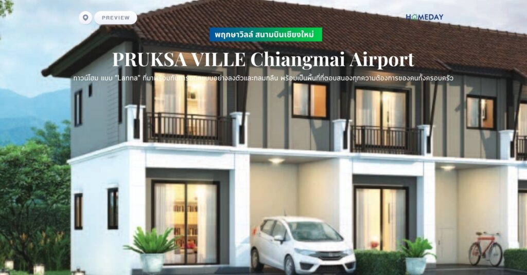พรีวิว พฤกษาวิลล์ สนามบินเชียงใหม่ (PRUKSA VILLE Chiangmai Airport) ทาวน์โฮม แบบ “Lanna” ที่มาพร้อมกับการออกแบบอย่างลงตัวและกลมกลืน พร้อมเป็นพื้นที่ที่ตอบสนองทุกความต้องการของคนทั้งครอบครัว