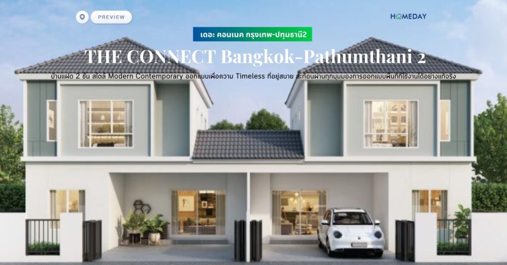 พรีวิว เดอะ คอนเนค กรุงเทพ-ปทุมธานี2 (THE CONNECT Bangkok-Pathumthani 2) บ้านแฝด 2 ชั้น สไตล์ Modern Contemporary ออกแบบเพื่อความ Timeless ที่อยู่สบาย สะท้อนผ่านทุกมุมมองการออกแบบพื้นที่ที่ใช้งานได้อย่างแท้จริง