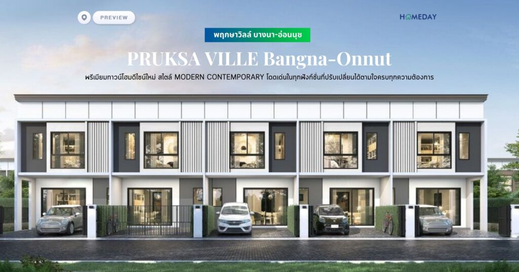 พรีวิว พฤกษาวิลล์ บางนา-อ่อนนุช (PRUKSA VILLE Bangna-Onnut) พรีเมียมทาวน์โฮมดีไซน์ใหม่ สไตล์ MODERN CONTEMPORARY โดดเด่นในทุกฟังก์ชั่นที่ปรับเปลี่ยนได้ตามใจครบทุกความต้องการ