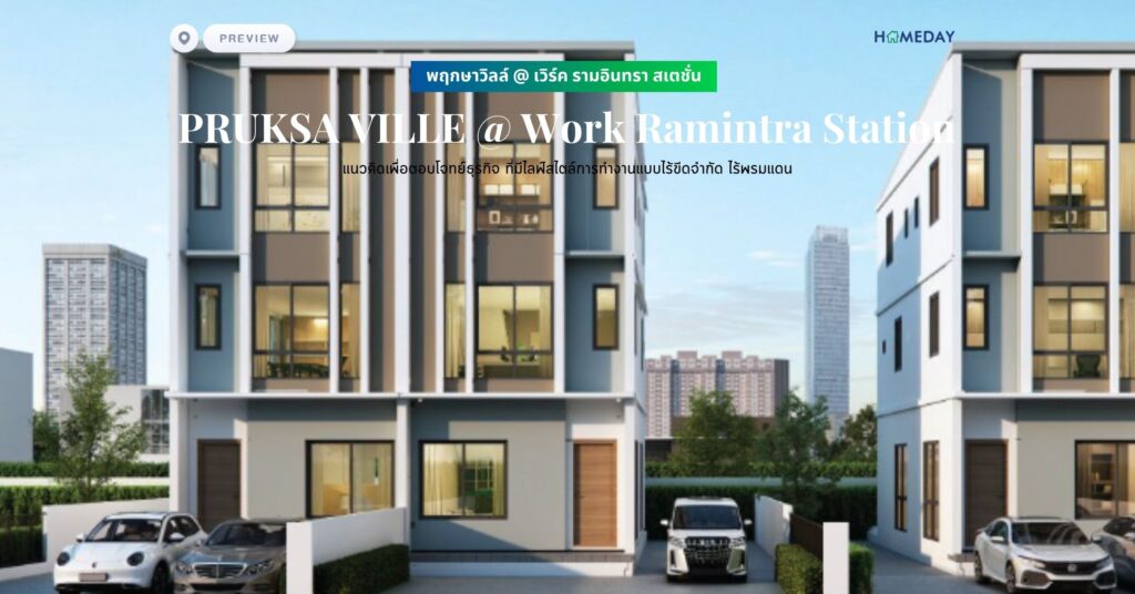 พรีวิว พฤกษาวิลล์ @ เวิร์ค รามอินทรา สเตชั่น (PRUKSA VILLE @ Work Ramintra Station) แนวคิดเพื่อตอบโจทย์ธุรกิจ ที่มีไลฟ์สไตล์การทำงานแบบไร้ขีดจำกัด ไร้พรมแดน