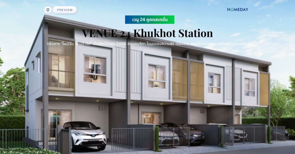 พรีวิว เวนู 24 คูคตสเตชั่น (VENUE 24 Khukhot Station) กลิ่นอาย “โมเดิร์น ป๊อปอาร์ต” เป็นศิลปะในยุค 2498 ของอเมริกา ในมุมมองความสุข เรียบง่าย แต่ดูดีการออกแบบพิถีพิถันในทุกตารางนิ้ว