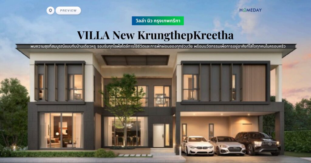 พรีวิว วิลล่า นิว กรุงเทพกรีฑา (VILLA New KrungthepKreetha) พบความสุขที่สมบูรณ์แบบกับบ้านเดี่ยวหรู รองรับทุกไลฟ์สไตล์การใช้ชีวิตและการพักผ่อนของทุกช่วงวัย พร้อมนวัตกรรมเพื่อการอยู่อาศัยที่ใส่ใจสิ่งแวดล้อมและทุกคนในครอบครัว