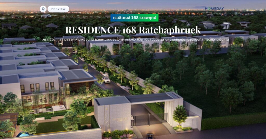 พรีวิว เรสซิเดนซ์ 168 ราชพฤกษ์ (RESIDENCE 168 Ratchaphruek) เพราะชีวิตถูกสร้างสรรค์ให้ไม่เหมือนกัน แตกต่างแต่ตอบโจทย์ทุกจังหวะชีวิต เป็นส่วนตัวผสานความทันสมัย ในรูปแบบที่สะท้อนความเป็นคุณ