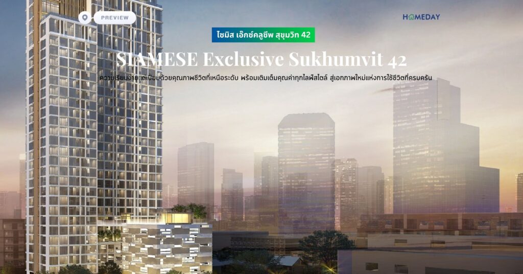 พรีวิว ไซมิส เอ๊กซ์คลูซีพ สุขุมวิท 42 (SIAMESE Exclusive Sukhumvit 42) ความเรียบง่ายแต่เปี่ยมด้วยคุณภาพชีวิตที่เหนือระดับ พร้อมเติมเต็มคุณค่าทุกไลฟ์สไตล์ สู่เอกภาพใหม่แห่งการใช้ชีวิตที่ครบครัน